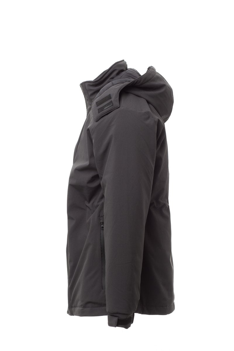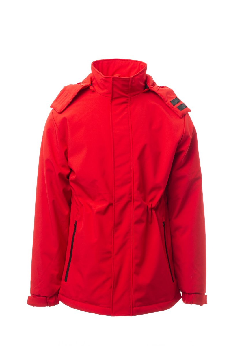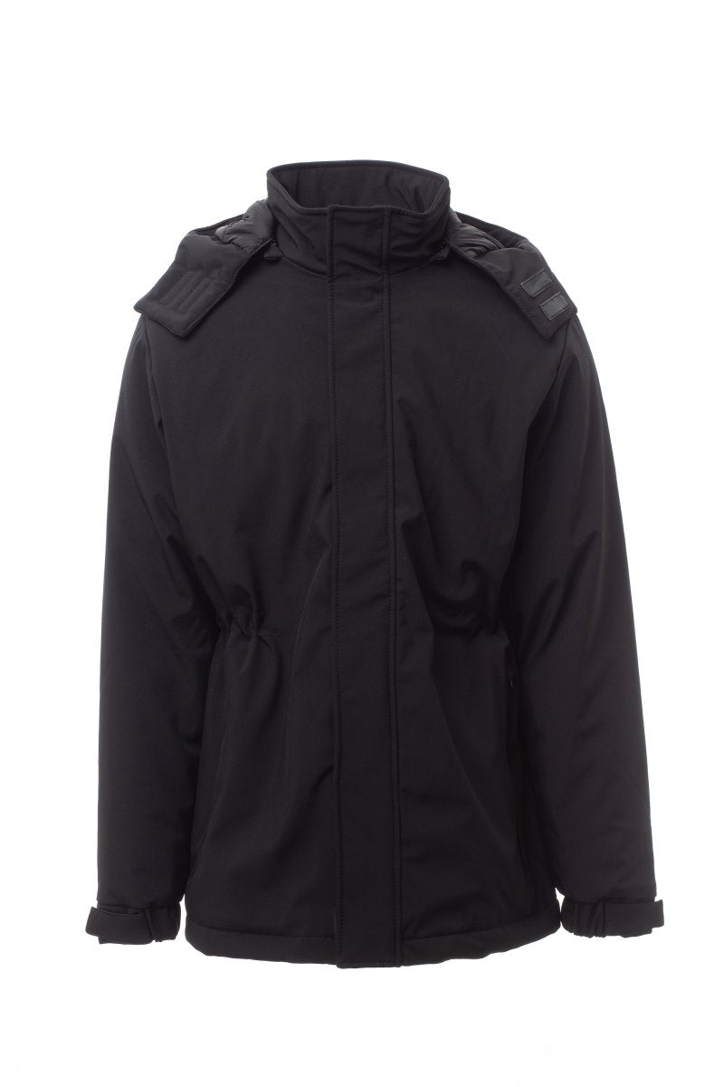 WP 8000 mm H2O, WVT 5000 g/m² 24u. Gevoerde soft-shell, met klittenbandsluiting en rits met metalen treklipje "semi-auto lock” en gepersonaliseerde runner. Afneembare capuchon, die vooraan met klittenband kan worden dichtgemaakt. Trekkoord in de taille, twee zakken met gecoate rits aan de buitenkant, een mesh binnenzak met klittenbandsluiting, een binnenzak om een tablet in te doen met klittenbandsluiting. Elastische manchetten, verstelbaar met klittenband. Gepersonaliseerde patch op de achterkant van de kraag, met reflecterend detail.